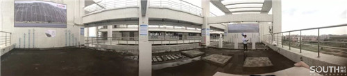 高边坡监测场景和大型桥梁监测场景建设在教学楼楼顶。将全站仪安全架设在室外,在两侧的墙体贴设画布模拟大型桥梁和高边坡的自动化变形监测场景。