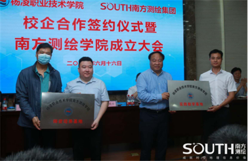 随后,王周锁与马然共同为“南方测绘学院”揭牌,张迪与马卓齐作为校企双方代表签订《南方测绘学院合作协议书》。张迪宣布了“南方测绘学院”领导班子成员名单,并向受聘的南方测绘朱茂栋等3位客座教授颁发聘书。学院向南方测绘授予“杨凌职业技术学院南方测绘学院实践教学基地”和“杨凌职业技术学院南方测绘学院师资培养基地”牌匾,南方测绘授予学院“南方测绘集团人才培养基地”牌匾。会上,南方测绘向学院捐赠了总价值超过120万元的航测和激光实训软件、三维实景校园数据模型等实验实训设备和物资。