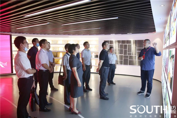 在座谈会前,在集团商务总监万鹏的带领下,来宾一行参观了南方测绘体验中心,并体验了南方虚拟仿真教学系统。