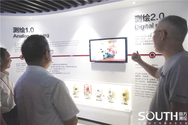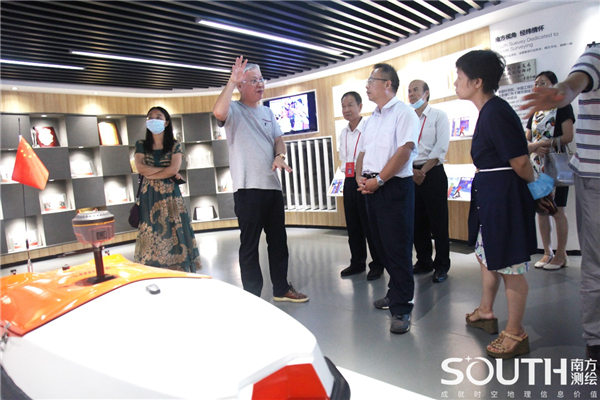 南方测绘总部办公室主任吴宇欣陪同来访嘉宾参观了南方测绘体验中心,为大家详细介绍了公司发展历程和测绘行业的新技术、新应用。