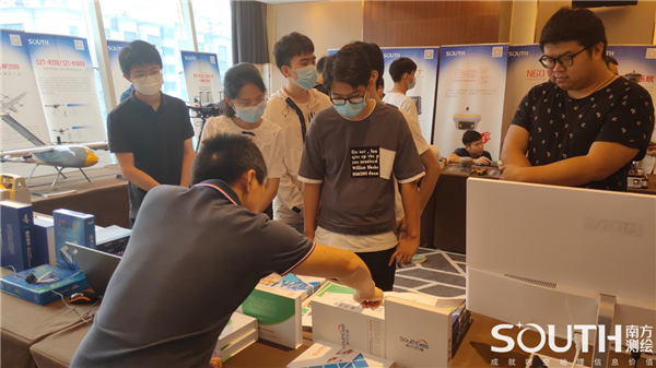 老师们首先参观了现场展出的南方测绘先进测量设备与地理信息软件,手持定位设备、GNSS定位设备、地形地籍成图软件、激光无人机、北斗教学系统平台、测绘虚拟仿真教学系统、智能安卓全站仪等产品和高精度测绘装备严阵以待,其中创享RTK、智能安卓全站仪备受关注。