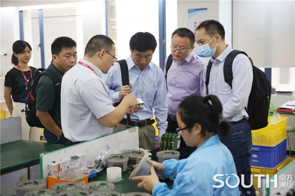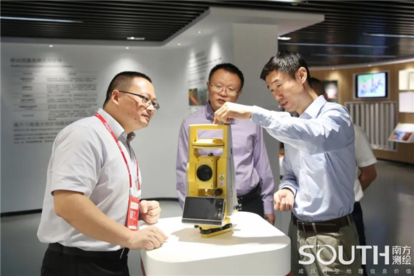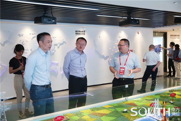 在南方测绘集团副总经理缪小林、葛瑞华的陪同下,来宾一行参观了南方测绘体验中心,详细了解了南方测绘的发展历程和测绘地理信息行业的新技术、新应用,体验了南方虚拟仿真教学系统,并参观了位于南方测绘地理信息产业园的高精度卫星导航生产研发中心。