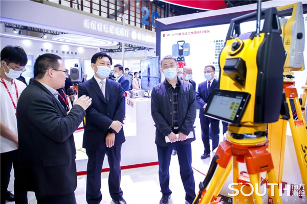 领导们参观了南方测绘展位各个产品,每路过国产测绘仪器的时候都忍不住多问几句“仪器的精度在国际上处于什么水平?”“产品应用的技术是否能够完全国产?”在得知创享RTK、高端全站仪、三维激光扫描仪等高端国产测绘仪器突破种种技术难题,打破了外国技术垄断的时候,领导们对南方测绘的创新能力给予了充分的认可。