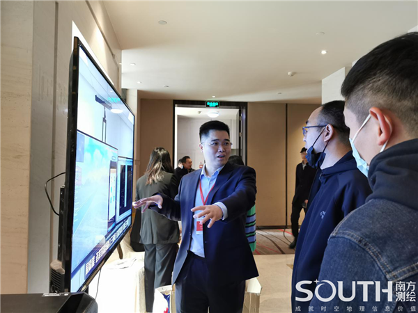北京分公司地信事业部总监史上智对南方测绘地理信息系列产品作介绍和展示;测量事业部专员宾煦介绍了南方测绘测量应用系列产品和技术;导航事业部专员王海南对卫星导航系列产品技术进行了讲解。