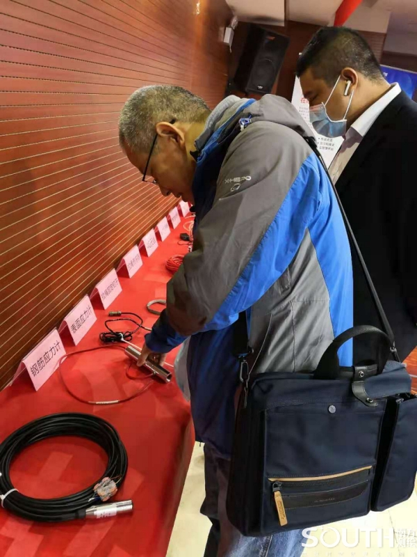 南方测绘技术人员为现场客户介绍监测设备