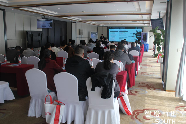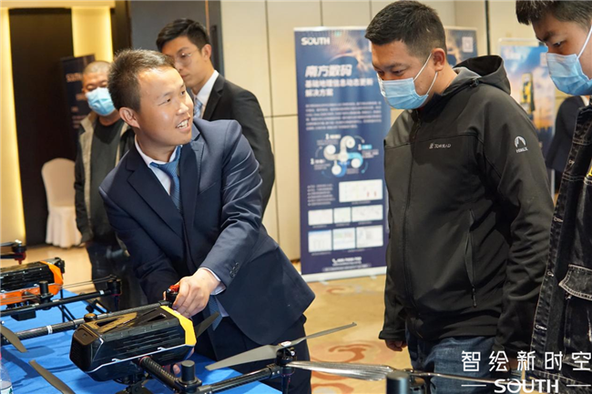 随后,付国作《高端地理信息装备及应用解决方案》主题报告,从无人机航测、全站仪、激光雷达测量、高端测绘装备、精密测量和智能监测、测绘教育关键技术与创新应用等七个方面全面介绍了南方新技术和解决方案;南方卫星导航副总工程师丁永祥在《北斗高精度卫星定位应用解决方案》主题报告中,详细介绍了南方测绘推出的北斗高精度卫星定位硬件装备和多行业应用案例;最后,南方智能市场总监齐麟以智绘创新为主题,分别从新技术赋能新型基础测绘、自然资源信息化解决方案、三维时空数据智能化应用三个方面勾勒出智析新时空、新未来的画面。