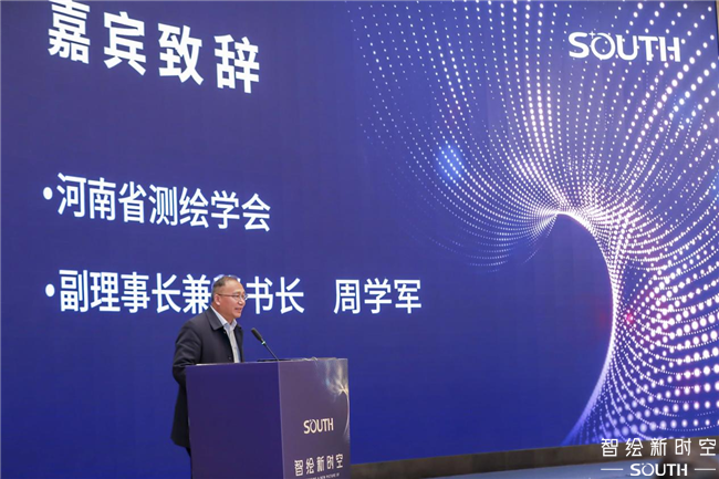 接下来,河南省测绘学会副理事长兼秘书长周学军为会议致辞。他说,南方测绘郑州公司依托南方测绘集团深厚的品牌积淀和强大的技术研发实力,将星级服务推进到市场和项目一线,为河南省自然资源管理和测绘地理信息产业发展提供了极大帮助。
