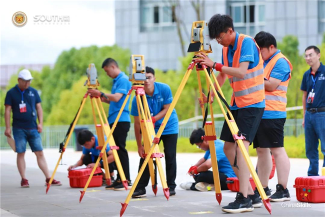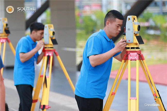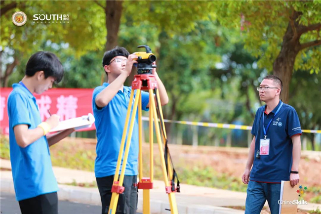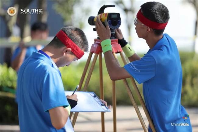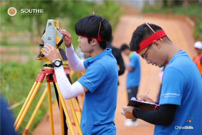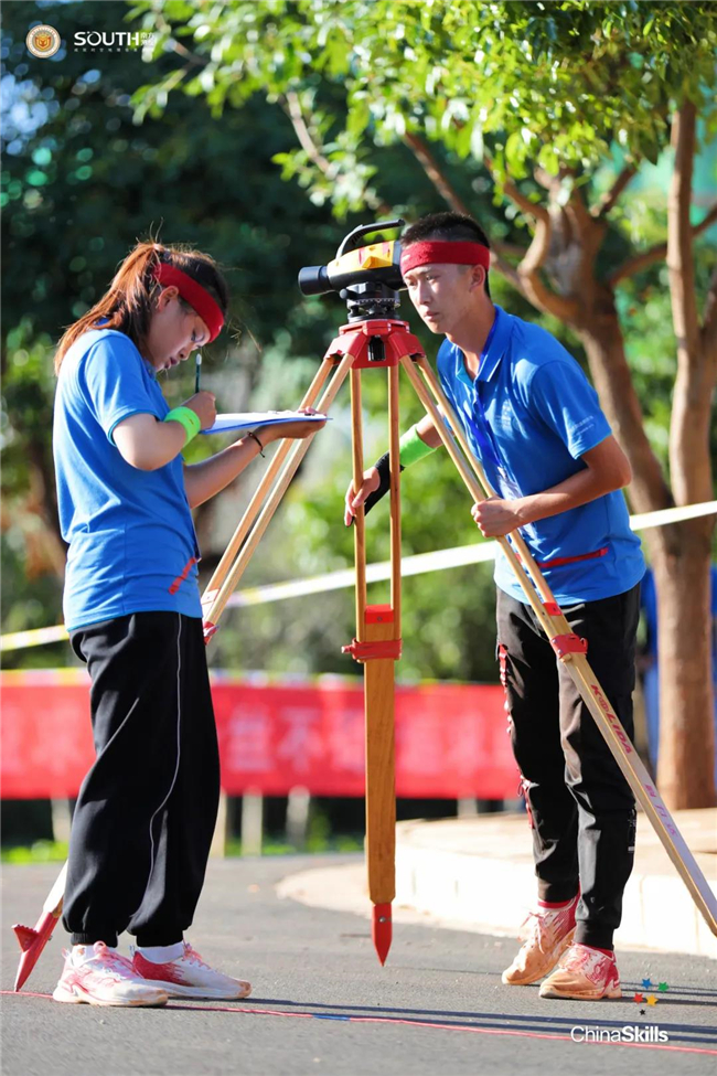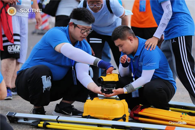 嘹亮的呐喊声停,口哨声一响,参赛的选手们手提设备快步向前,随即一系列测量操作有条不紊地开展。这是全国高职技能大赛工程测量赛项的比赛现场。