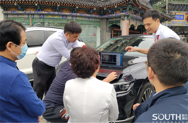 调研过程中,南方测绘新型基础测绘西安试点工作项目负责人卜志坚向调研组作了整体汇报介绍,包括投入项目的人员、设备等,尤其对车载激光扫描的内、外业流程进行了详细说明,对实施过程中遇到的问题和解决方案进行了阐述,并展示了扫描获取的成果数据。