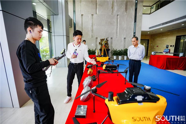 随后镜头来到南方无人机航测展区,智航SF700A、智航SF600无人机装备及多款单镜头、五镜头载荷整齐地陈列在展示台上,针对各款产品的性能优势和应用领域,技术人员进行了详细的解答。