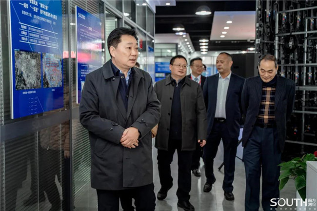 仪式结束后,在马超和缪小林的陪同下,李传殿一行参观了时空大数据中心,详细了解了中心目前的架构、业务方向和配置等情况,在设备展示区,缪小林对南方测绘在常规和新兴测绘装备、卫星导航定位应用、地理信息应用服务及智慧城市应用等方面的应用成果和技术进展进行了汇报。李传殿说道,时空大数据中心的揭牌是双方战略合作落实的一个良好开端,未来双方以此为支点,积极推进测绘地理信息科技创新和产业化发展,为自然资源信息化提供更多支撑和保障,继续落实合建“两基地一中心”的“两基地”,积极行动,加大科技创新和产业化实施力度,争取早日落地成果,为安徽省自然资源信息化及测绘地理信息行业的发展作贡献。