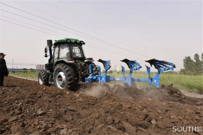 在北斗+农机的助力下,小麦抢收获得了成功。冬小麦收割正值六月,这时阳光充足,水热丰富,适合套种一些豆类、蔬菜、经济作物等。套种前就需要给土壤做一套深度“按摩”,也就是土地深松。