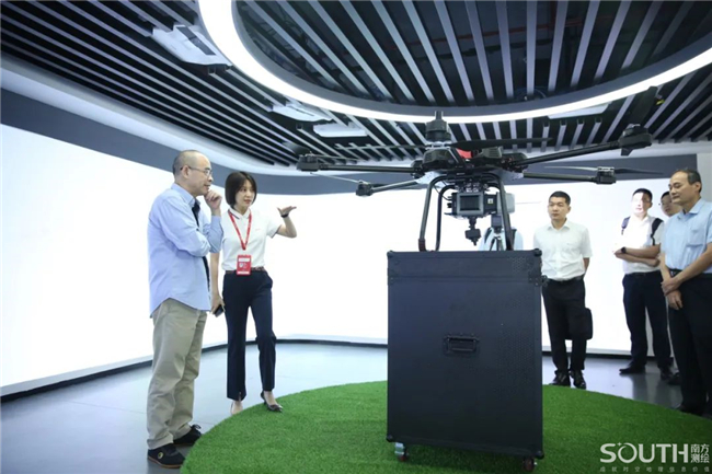 在马超的带领下,胡扬忠一行陆续参观了南方测绘体验中心及卫星导航、三维激光和无人机等产品生产线,充分了解了南方测绘的发展历程、发展情况以及公司在测量测绘装备、卫星导航定位、地理信息数据服务等方面的技术成果和应用方案。胡扬忠感慨道,从某种程度来说,海康威视与南方测绘保持了同频发展。