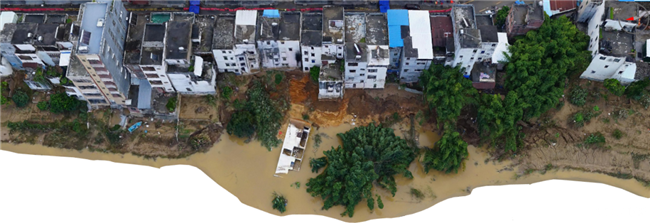 受台风“苏拉”带来的强降雨影响,广东省云浮市罗定江大湾镇河段遭遇1985年以来最大洪水。9月5日,大湾镇河段两岸出现多处崩岸险情,一处房屋倒塌,多处房屋地基严重受损面临倾倒风险。