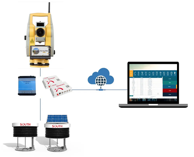 NT10(0.5″) /NTS-591R10(1″)国产高精度测量机器人搭载监测之星软件,可以实现半自动化监测和全自动化监测,不受条件制约,无人值守,节省人力、物力,全天候作业。自动化监测方案除了全站仪本身以外,还包含了自动控制、现场防护、网络传输、供电等,再依托南方SMOS自动化平台,构成综合的自动化监测解决方案,实现远程控制、周期性自动化数据采集,记录监测目标的位移变化量及变化趋势,进行智能化数据分析,判断目标物的位移变化趋势,根据设定的预警值,提供多种预警方式,为技术人员提供实时的现场数据监测,为施工现场的安全提供指导和决策的依据。