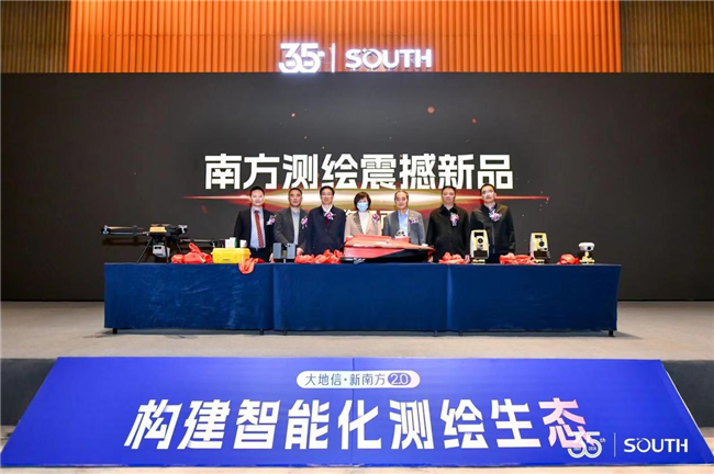 新产品新技术发布环节,福建省测绘地理信息学会秘书长陈慕贞;福建省测绘产品质量检测中心主任姜建慧;福建省测绘院院长林泉;福建省测绘与地理信息协会秘书长王兴国;福建船政交通职业学院土木工程学院副院长朱明栓、南方测绘集团创始人、董事长马超;南方测绘集团福州分公司总经理方明共同为新品揭幕。