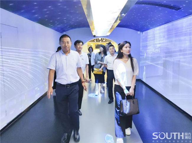 李春阳副院长一行在南方测绘集团副总裁、教育事业部总经理郭宝宇,郑州分公司业务经理贾新伟,南方智能测绘软件事业部副经理付健等人的陪同下,分别参观了南方智能办公区、南方测绘产品中心以及南方元宇宙技术中心。
