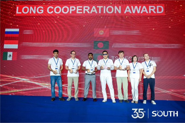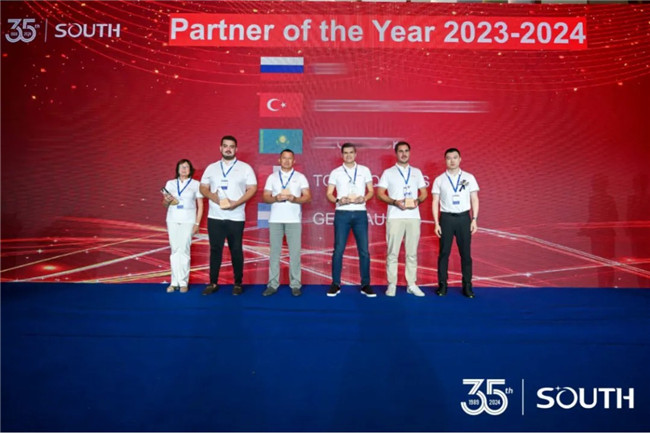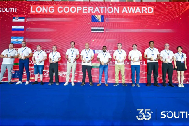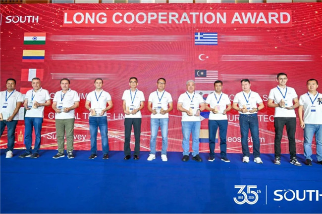 南方测绘自2003年跨出国门,步入国际市场已有20余年。来到现场的合作伙伴分别来自34个国家或地区,合作时间从数年到二十余年不等。覆盖范围之广、时间跨度之久都足以证明南方测绘国际市场的扎实与深厚。颁奖典礼现场颁发了“长期合作奖”“年度伙伴奖”“GEO先锋奖”“最具专业价值成员奖”等奖项。