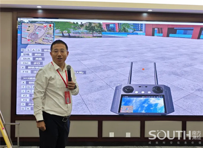 比赛当晚,南方测绘副总裁郭宝宇作《智能测绘背景下南方教育发展实践》主题报告。他表示,南方测绘元宇宙智能测绘实训系统是在智能测绘人工智能快速发展,国家大力提升测绘新质生产力的背景下发展起来的,旨在加强测绘行业专业技术和应用型人才高质量培养,提升高校学生的就业能力。南方测绘技术团队历经七年的磨砺,不断攻克技术难关,虚拟仿真实训教学产品从无到有,由简单到复杂、技术领域从1.0到2.0实现了质的飞跃。在当前的新形势新要求下,传统测绘课程需要升级改造,融入智能测绘的新技术、新方法和新理念,从而达到新型测绘技术人才的培养目的。