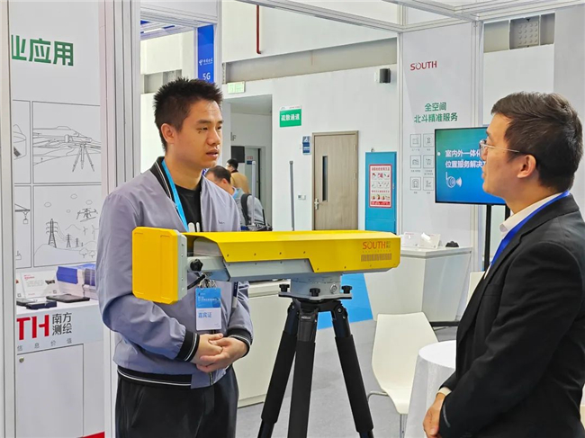 展区里,南方测绘技术工程师结合产品和项目案例,为参观嘉宾们讲解了室内外定位整体解决方案,基于室内北斗及室内音频融合高精度定位手段,提供更精准的人员车辆位置获取和服务能力,为城市工程建设、市政设施运管服以及大众出行导航应用等场景提供更全面、更精准的北斗高精度位置服务。