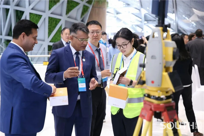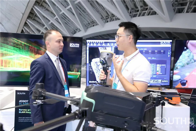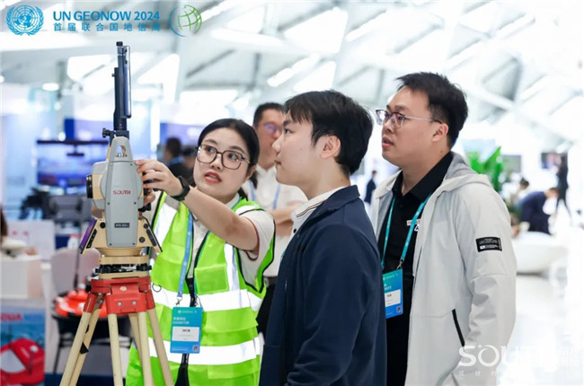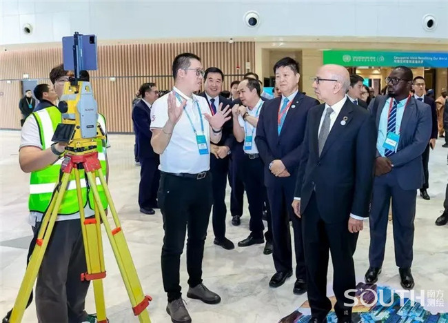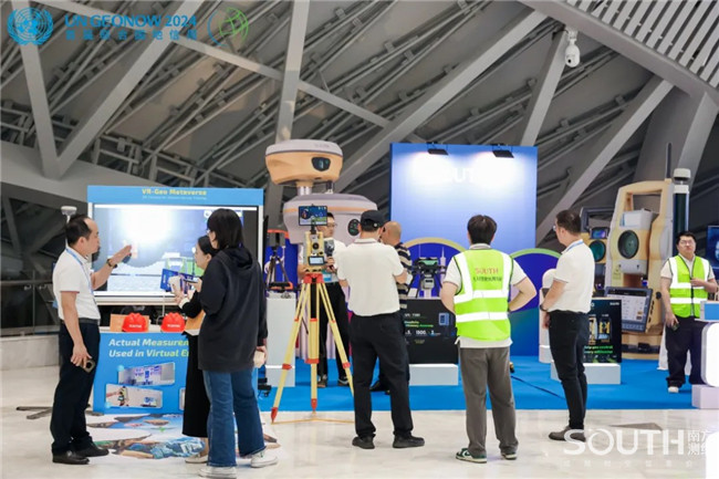 作为中国地理空间行业的领军企业,南方测绘集团作为集中参展商参加了此次活动,展示了激光雷达、机器人全站仪、RTK、虚拟仿真教学系统等众多产品和解决方案。联合国助理秘书长纳维德·哈利夫、联合国全球地理信息知识与创新中心主任李朋德等领导莅临展台了解相关技术,南方测绘展台产品和技术吸引了多国代表前来观摩和体验。