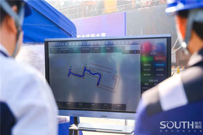 比赛期间,选手们争分夺秒,熟练操作门机完成各项任务挑战,以精湛的技艺和顽强的拼搏精神,展现了新时代技能人才的卓越风采。南方测绘北斗高精度电子裁判系统精准捕捉选手操作轨迹,将定位打靶、蛇形绕桩等计分要点可视化,助力比赛顺利进行。