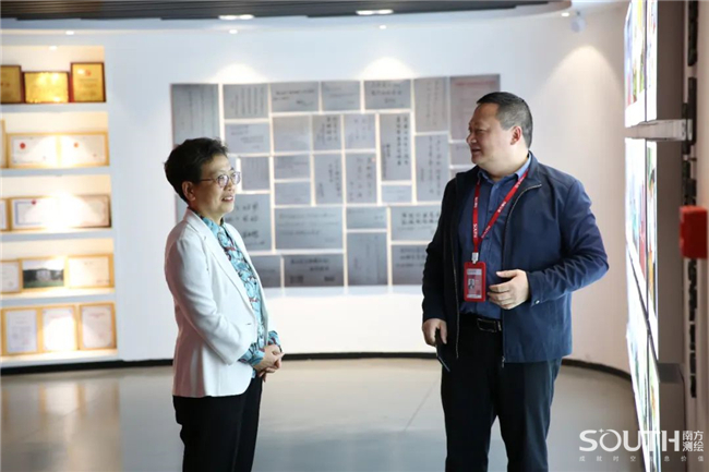 在缪小林等的陪同下,王永梅社长一行参观了南方测绘体验中心,从企业当前发展情况、发展历程、产品和业务方向、企业文化等多方面深入了解南方测绘。在这里,王永梅社长重点了解了近年来南方测绘高端装备国产化、智能化和产业化应用的发展情况,并对南方测绘三十多年来取得的发展成果表示肯定。