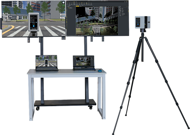 系统引入架站式三维激光扫描仪、手持三维激光扫描仪、机载激光雷达等先进设备,并将其与虚拟仿真技术深度整合,实现从硬件操控到仿真场景点云数据采集,再到数据处理软件应用的一体化协同作业模式。