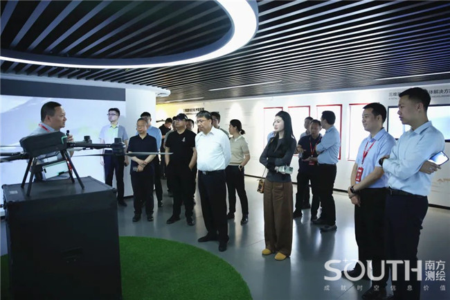 其中,专家团一行对集团自研的机载激光雷达、高精度超声波马达全站仪、城市地下管线探测仪等智能化数据采集获取设备和成熟应用解决方案颇为关注,并与技术人员交流了解相关装备或方案的应用场景和市场应用程度。