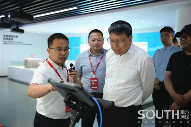 在缪小林等的陪同下,中国测绘学会地下管线专业委员会专家团一行参观了南方测绘体验中心。在这里,专家团一行听取了集团发展历程、现状以及产品和业务方向等的汇报,重点了解了近年来南方测绘高端装备国产化、智能化和产业化应用的发展情况,并对南方测绘三十多来取得的发展成果表示肯定。