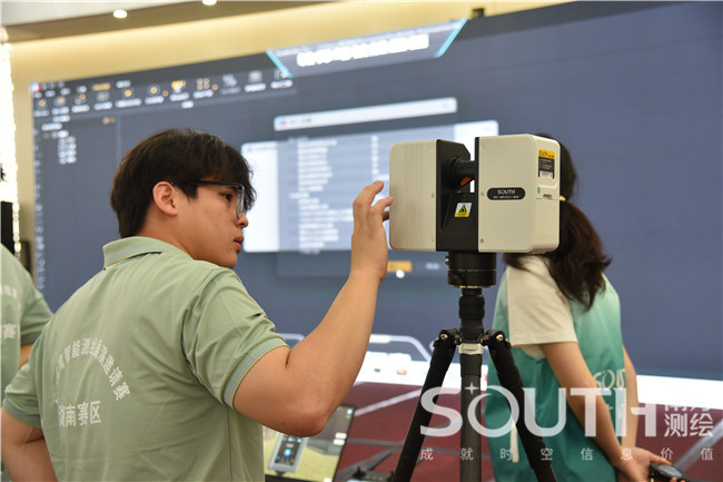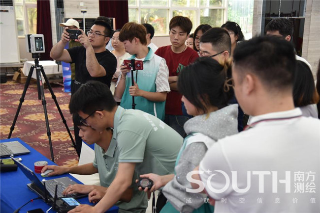 开赛后,来自10所学校的11支队伍44名参赛选手通过应用虚实结合的全站仪、RTK、无人机、架站式三维激光扫描仪等在南方测绘元宇宙智能测绘场景中完成目标测区的数字测图、无人机古建筑寻宝及古建筑点云三维建模任务。