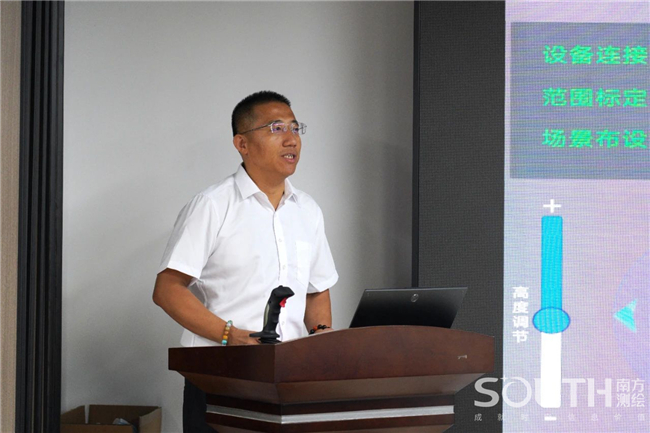 座谈期间,郭宝宇为大家演示元宇宙、测量机器人数智测图操作流程