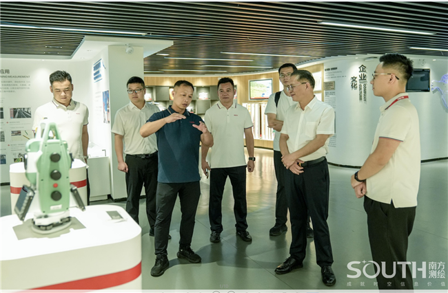 在杨艺等陪同下,朱小波一行参观南方测绘体验中心。朱小波表示,作为一家深耕测绘领域的民族企业,南方测绘多年不忘初心,脚踏实地持续为社会输送优质的产品、技术及应用成果等,这让人深感震撼。