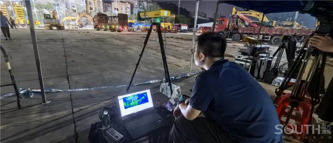 下午14:00,南方测绘技术人员分批次到达现场,投身抢险救援。技术人员分设两组,高效联动,同步进行大范围扫测和边坡监测,科学评估风险,根据周边地质条件和天气变化情况,为救援人员施救和安全管理提供数据支撑,严防发生次生灾害和人员二次伤亡。