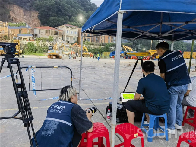 8月8日中午12时许,最后一名被困人员成功被找出。广州市白云区应急管理局通报,经过省、市、区三级多部门不间断救援,广州市白云区大源村山体垮塌现场被困人员14人已全部救出,其中7人遇难,7人受伤送院。受伤人员均无生命危险,已有3人出院。现场人员搜救已结束。全程,南方测绘技术人员始终坚守现场,保驾护航。