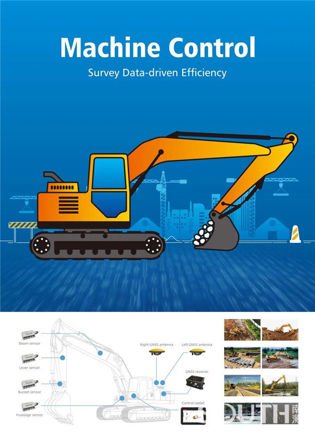 智慧施工3D挖机引导方案基于南方测绘挖掘机引导系统,融合了全球导航卫星系统(GNSS)天线和传感器技术,实时获取挖掘机当前的位置、高度、运动姿态等数据,结合测绘和工程设计数据,为挖掘机操作手提供实时的引导,解决挖机和铲斗的精准化空间定位以及基于图纸和模型的3D引导式施工,直击施工一线需求。