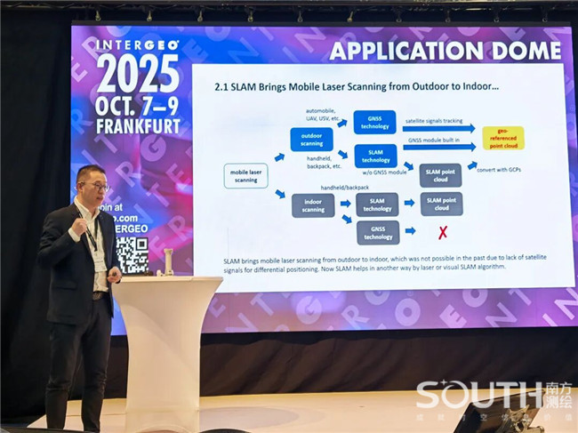 展会应用会场同样精彩纷呈。南方测绘国际业务副总经理张少雄带来的《GNSS Positioning While Satellites Unlocked? Now Possible!》专题技术报告,生动演示了在卫星失锁等复杂工况下仍可实现稳定高精度定位的创新技术,充分展现了地理空间技术未来的广阔应用潜力与发展方向,获得了在场用户的高度认可。