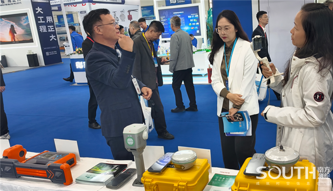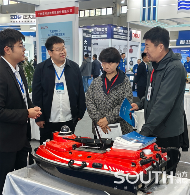 在装备展示区,南方测绘三维激光扫描仪、机器人全站仪等高端装备同样备受瞩目,水利行业的参会嘉宾与技术团队在水库大坝自动化监测以及病害识别、水利数据底板建设、河道堤防巡检等领域开展了深入交流。