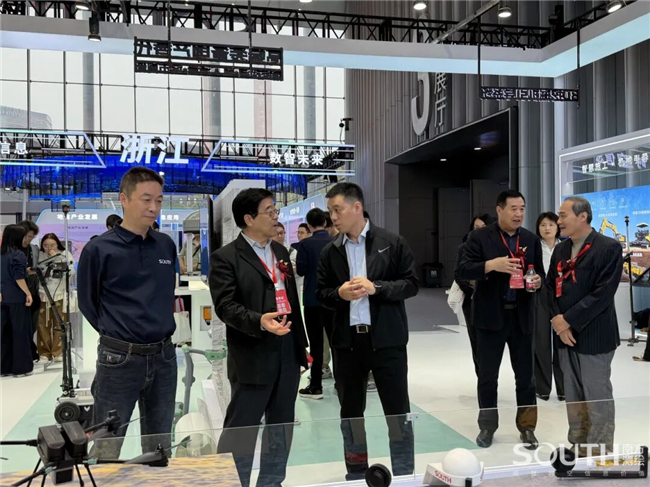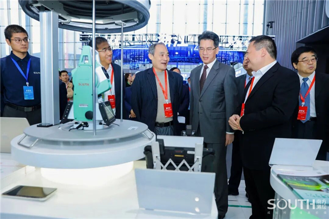 中国科学院、中国工程院院士,国家最高科学技术奖获得者李德仁(左三);中国工程院院士刘经南(左二)亲临南方展台