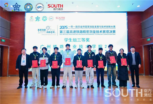 11月22日-24日,2025一带一路暨金砖国家技能发展与技术创新大赛之第三届高速铁路精密测量技术赛项决赛在湖南高速铁路职业技术学院成功举办。来自全国各地的65支精英战队齐聚衡阳,展开技艺角逐。