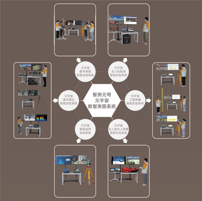 南方测绘紧跟教育部教育数字化、教师数字素养提升等政策要求,打造的智测元穹元宇宙数智测图系统,为测绘教育数字化转型提供了全新解决方案。该系统以元宇宙技术为核心,构建起全场景、沉浸式的智能测绘教学体系,涵盖元宇宙智能测绘校园场景、教师驾驶舱、数字测图、无人机航测、激光雷达、工程测量、无人船水上测量、智能监测等八大智能实验系统,实现硬件孪生、场景孪生、流程孪生、成果孪生的全维度虚实融合。