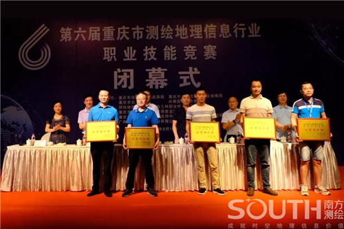 经过五天的激烈角逐,8月16日下午,由重庆市规划和自然资源局、重庆市人力资源和社会保障局、重庆市总工会、共青团重庆市委员会、测绘地理信息行业特有工种职业技能鉴定重庆站联合举办,重庆市规划和自然资源调查监测院、重庆市勘测院承办,广州南方测绘科技股份有限公司重庆分公司协办的第六届重庆市测绘地理信息行业职业技能竞赛在重庆顺利闭幕。重庆市规划和自然资源局总工宗松,重庆市规划和自然资源局测绘管理处处长张治清,重庆市规划和自然资源调查监测院院长张孝成,重庆市勘测院总工俞春,重庆市地理信息和遥感应用中心副主任徐永书,南方测绘重庆分公司总经理袁家秀等出席了闭幕式。