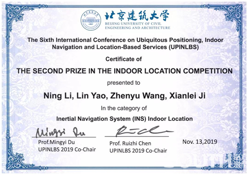 南方卫星导航室内定位团队在此次会议的大赛中取得了不俗的成绩,两支参赛队伍:UWB组和INS组均荣获UPINLBS2019二等奖。
