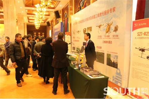 大会期间,位于会场内部的南方测绘展台前集聚众多参会代表,大家就现场展出的设备与技术人员进行交流,其中天巡复合翼无人机MF2500和无人机载激光雷达SZT-R250吸引众多领导驻足参观。
