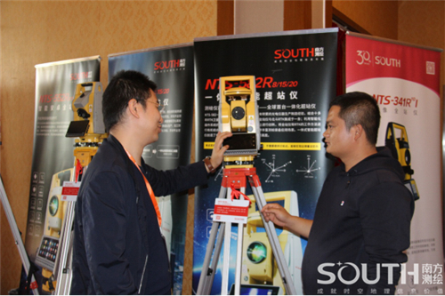 会议展区布展了南方全新的高端仪器设备,其中最新的智能安卓全站仪NTS-552、NTS-582、无人机MF2500备受关注。