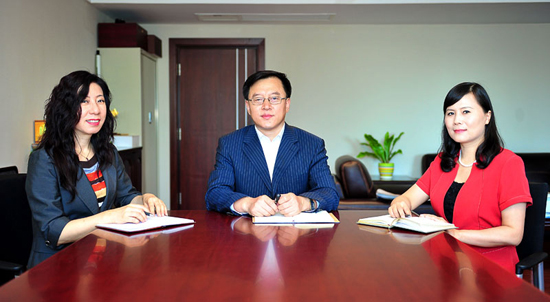 中国测绘宣传中心(中国测绘报社)现任领导班子成员:中心主任(报社社长)周远波(中)、中心副主任(报社副社长)雷德容( 右)、中心副主任(报社总编辑)陈兰芹(左)。