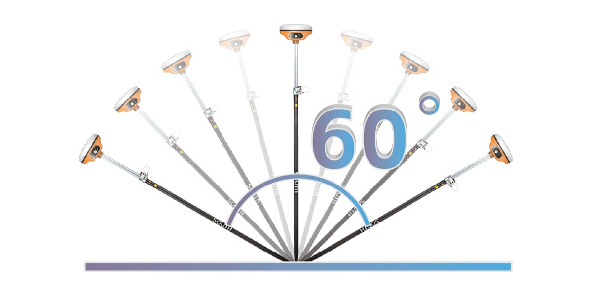 惯导倾斜测量 | 内置IMU惯性测量传感器,支持惯导倾斜测量功能,根据对中杆倾斜方向和角度自动校正坐标。 |