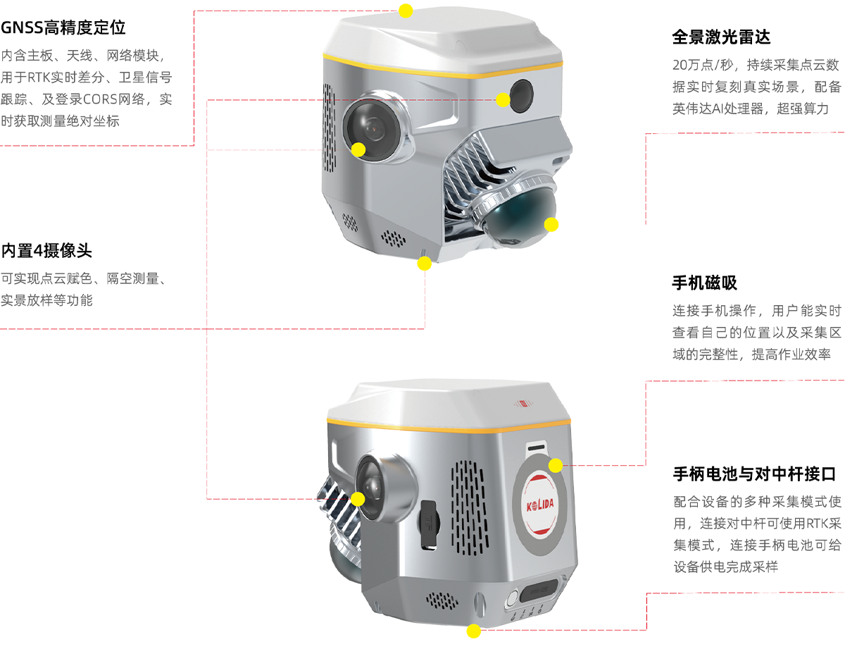 搭载NVIDIA高算力AI处理器,集成实时点云解算引擎与真彩色点云可视化模块,支持外业端即测即览、动态量测。自主研发的智能监测算法可同步追踪项目进度与点云质量,通过闭环反馈机制降低返工率,综合作业效率显著提升。