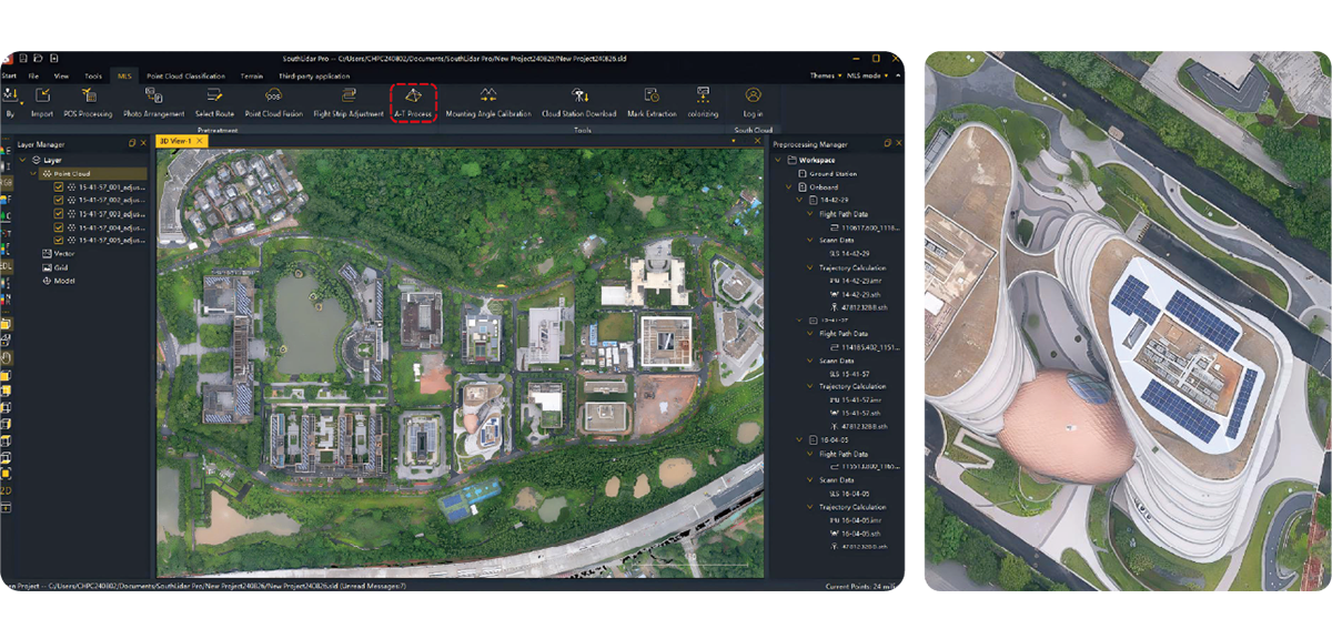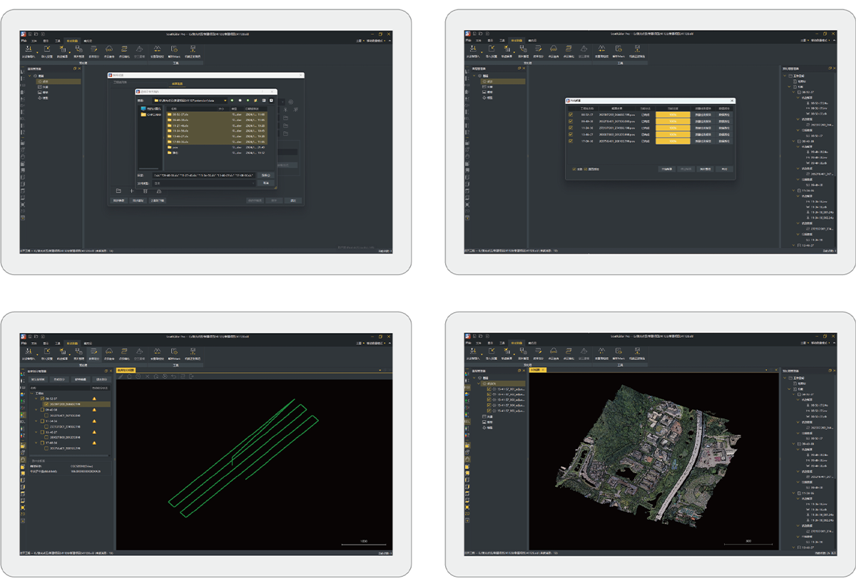 自主研发的三维激光一体化处理软件,能够处理架站式激光数据、机载激光雷达数据,并且可以导入多组数据,进行批量处理。