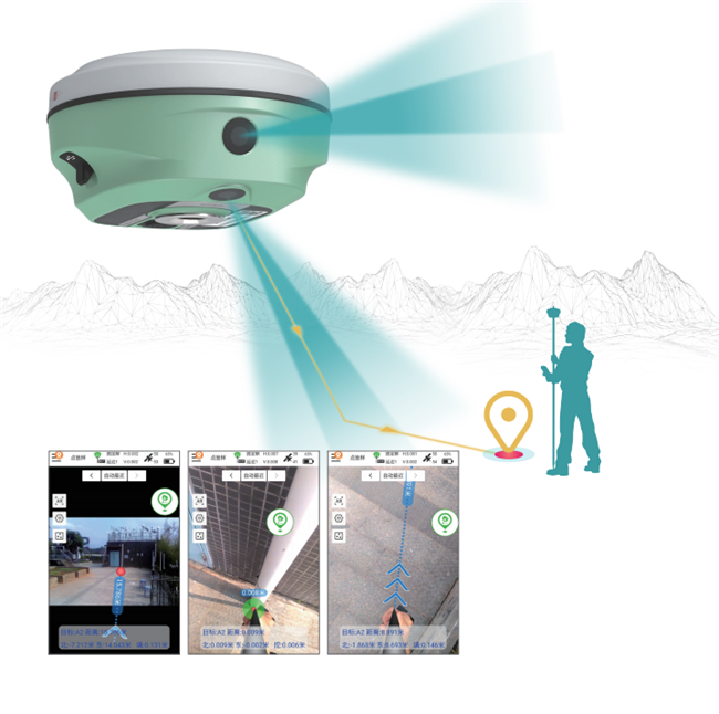 内置实景放样双摄像头,深度结合GNSS技术、惯导技术、影像技术,根据实地影像及箭头,动态指示放样行进路线,放样快人一步。根据放样目标距离,自动无缝切换摄像头,为放样作业提供更好的视野,支持自定义切换距离。